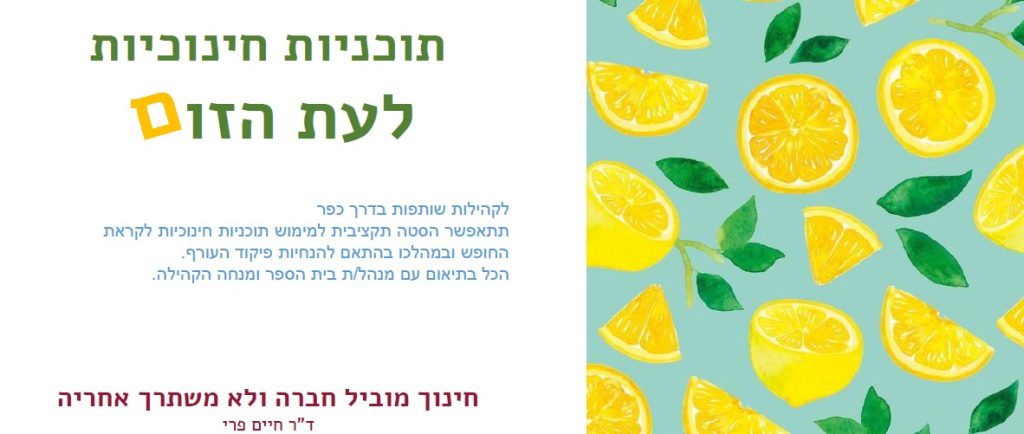 לפניכם הצעות לתוכניות חינוך שניתן לקיים תוך שמירה על ההנחיות בתקופת המלחמה.