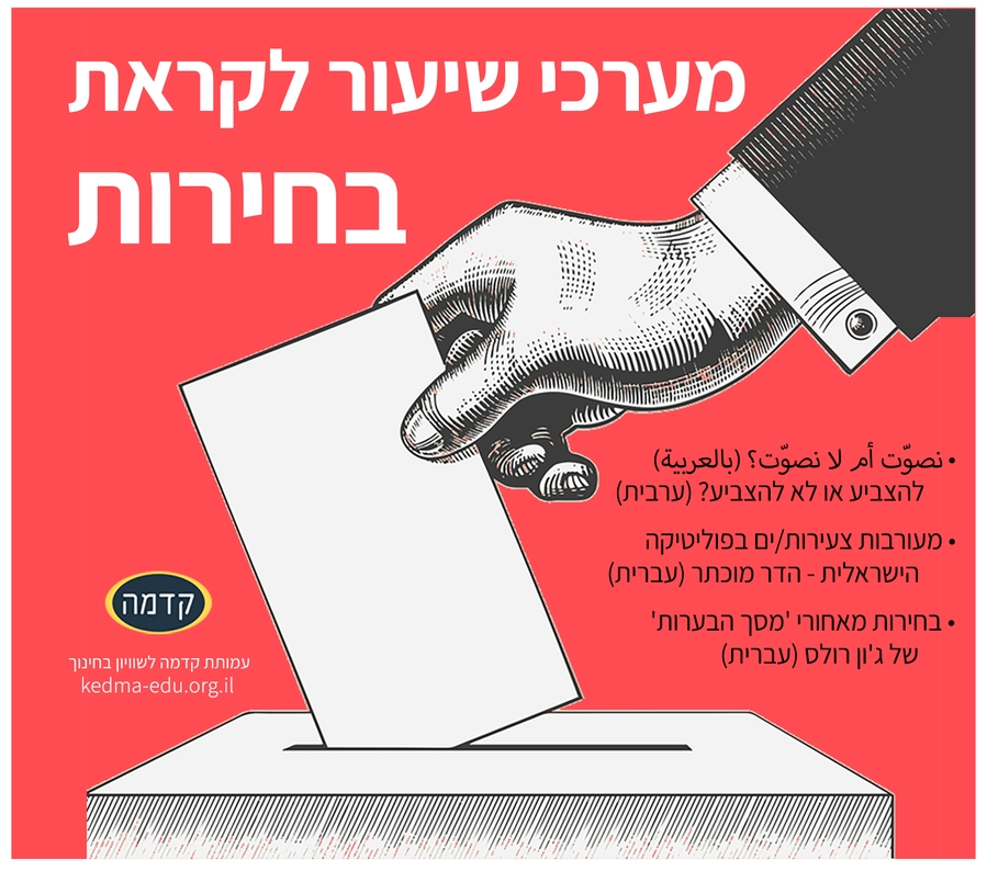 • מערכי שיעור לבחירות!! כן כן זה קורה שוב. מערכי שיעור חדשים וותיקים, בעברית ובערבית, מחכים לכן/ם גם בסבב הבחירות הזה.